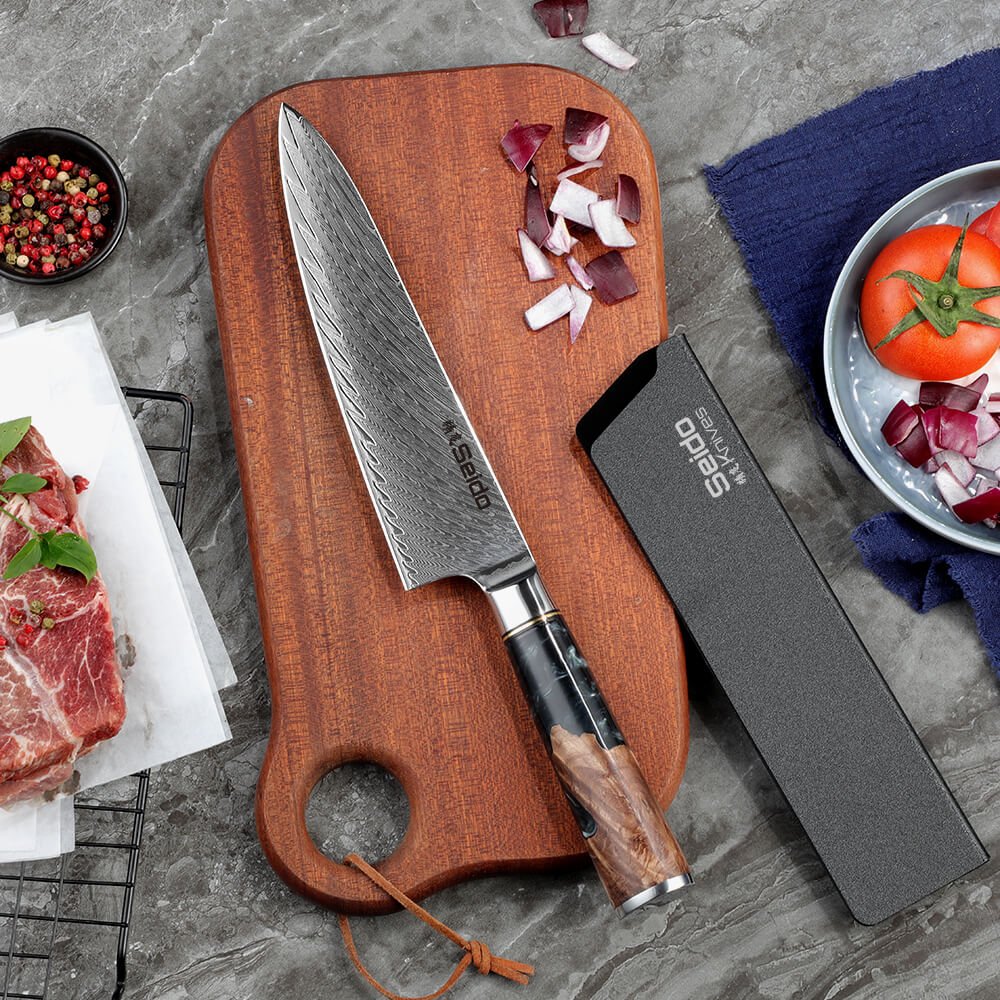 Experience the exquisite. artisan hand-forged SEIDO™ Japanese Damascus Steel Chef Knife. Incomparable to any kitchen knife ever made. Each blade and handle are uniquely handcrafted to reveal the executive chef within you; stand out from the crowd.