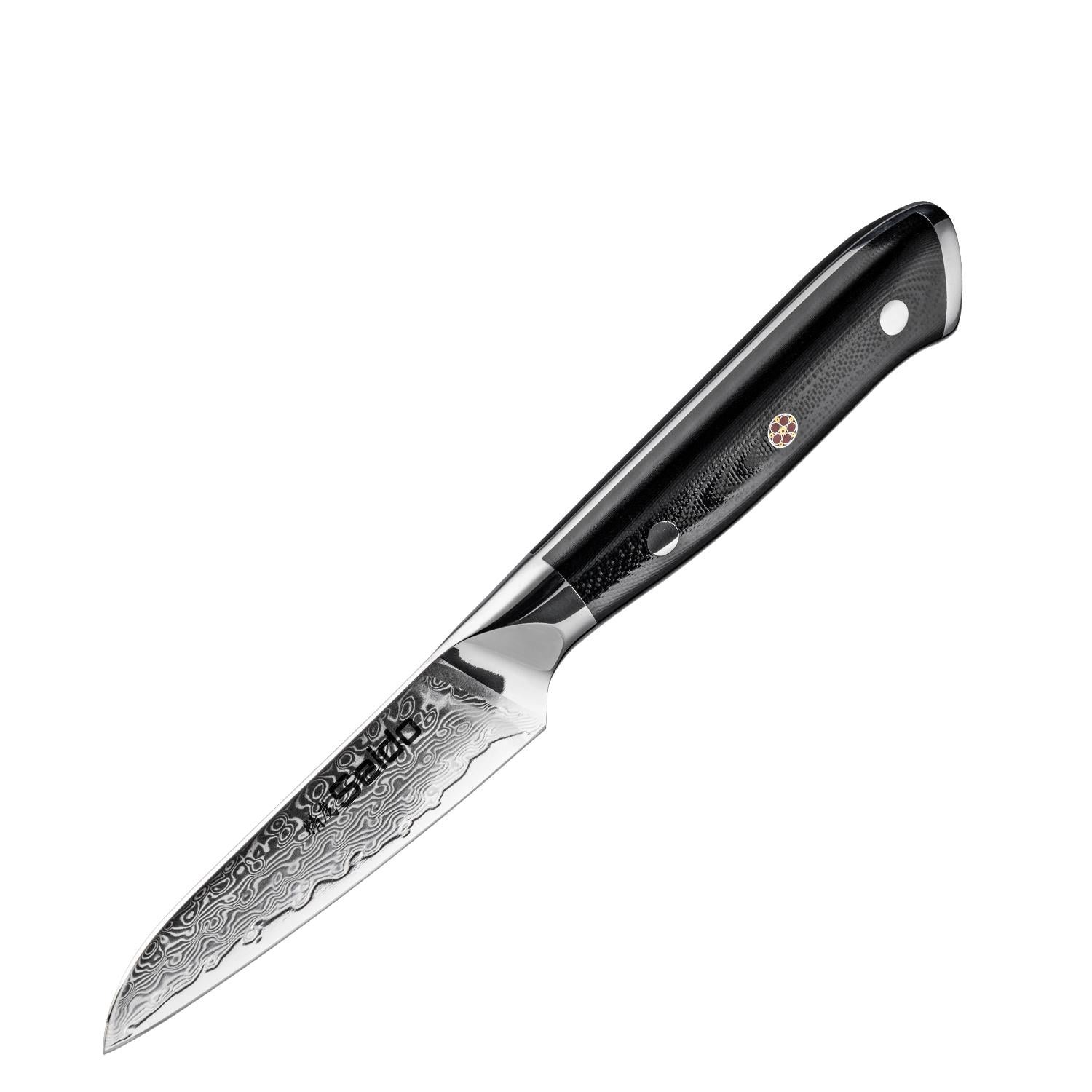Support from 8:30 AM to 10:00 PM everydayMeet the Shujin Series 3-Piece Paring Knife Set — a precise trio for in-hand work and small-format prep. The curved bird’s beak peeler scores and turns with control. the straight-edge parer handles daily trimming and garnishes. and the serrated parer breezes through skins and delicate crusts. All three feature a VG-10 steel core with Damascus cladding and ergonomic G10 handles for secure grip.