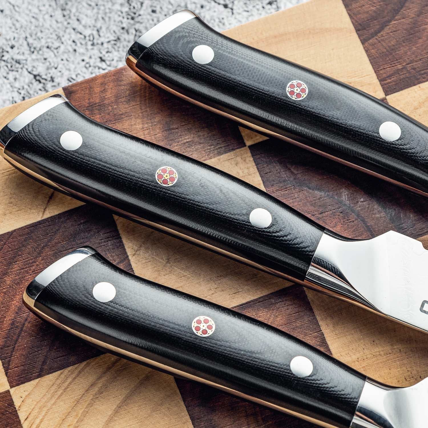 | Protection | Three fitted sheaths (one per knife) |