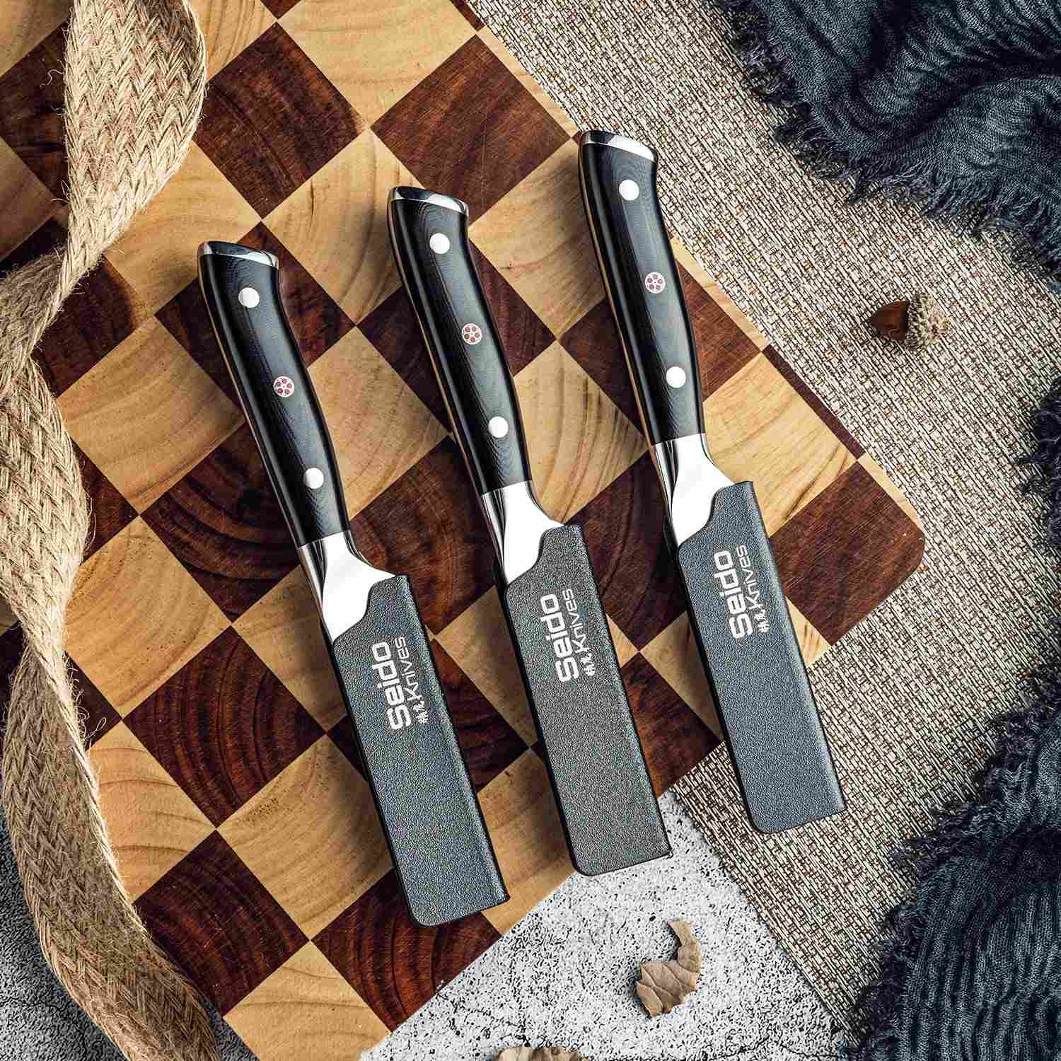 - Store safely in the included sheaths. knife block. or gift box.
