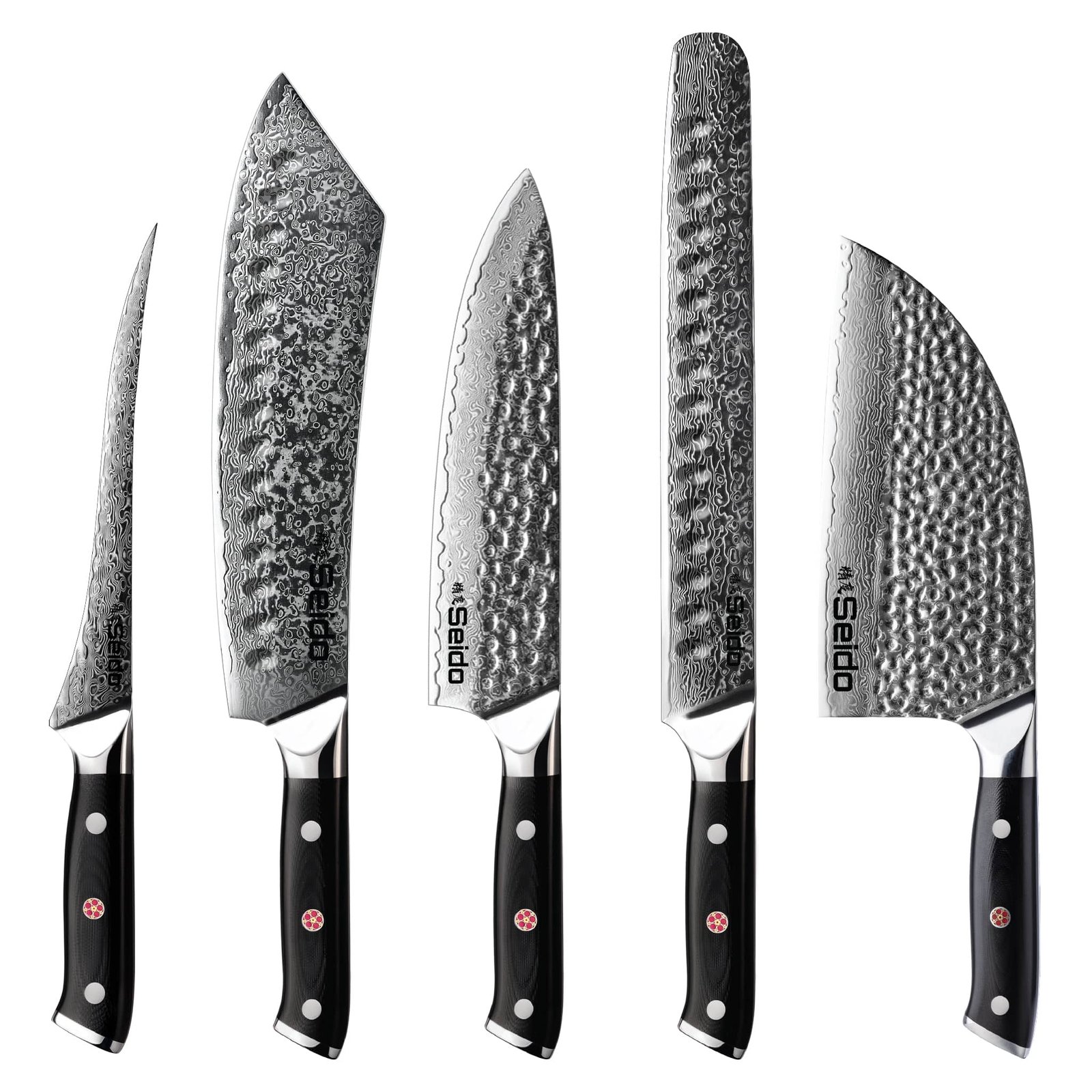 Introducing the Shujin 5-Piece Knife Set. a collection of precision-engineered tools designed to elevate your culinary skills. Each knife in this set—from the robust cleaver to the razor-sharp fillet knife—is crafted with VG-10 super steel and 67 layers of Damascus steel. ensuring unparalleled sharpness. durability. and edge retention. Whether you’re slicing. dicing. or carving. these knives offer the perfect blend of strength. balance. and control. making them indispensable for both professional chefs and home cooks.