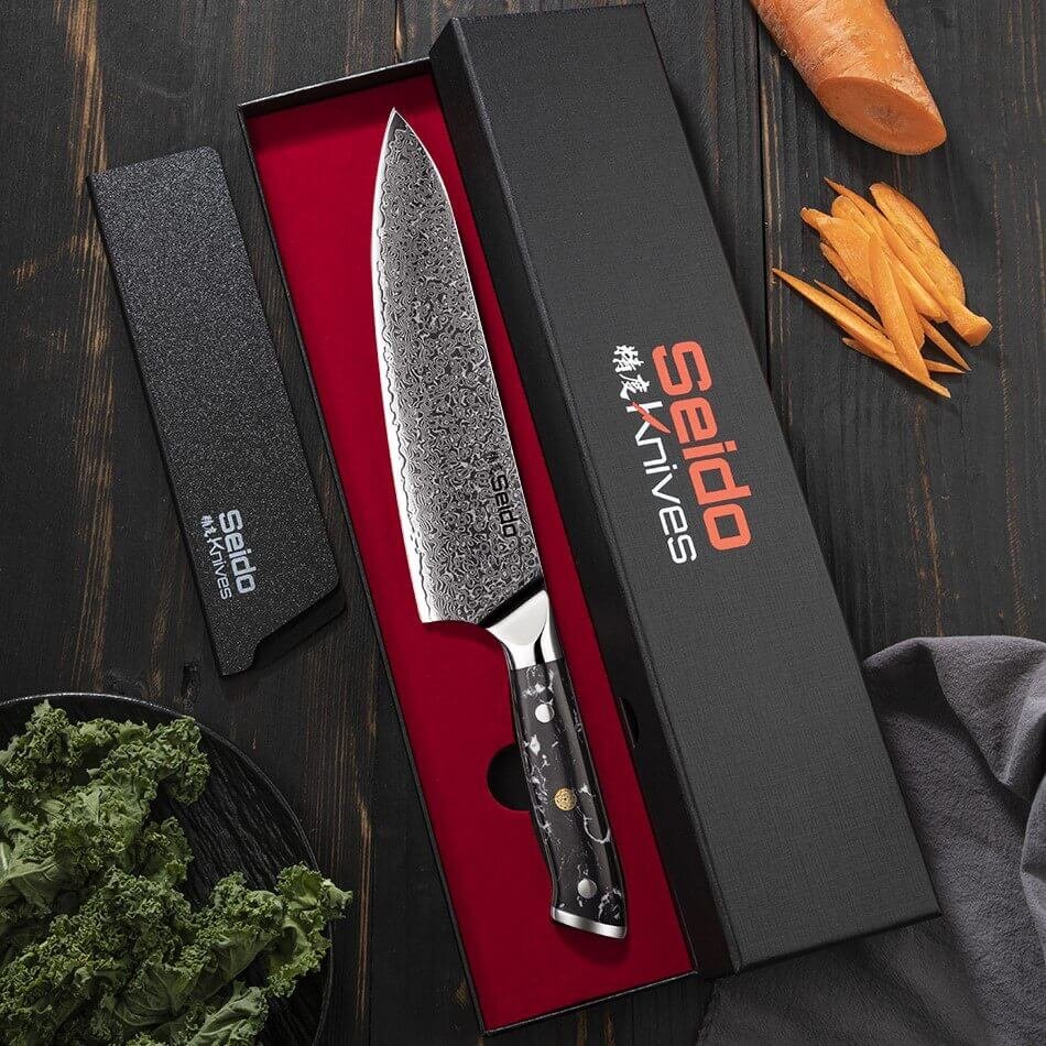 Experience the magnificent. artisan hand-forged SEIDO™ Damascus Steel. Takoizu Gyuto (Chef’s) Knife. Incomparable to any kitchen knife ever made. Each blade and handle are uniquely handcrafted to reveal the master chef within you; stand out from the crowd.
